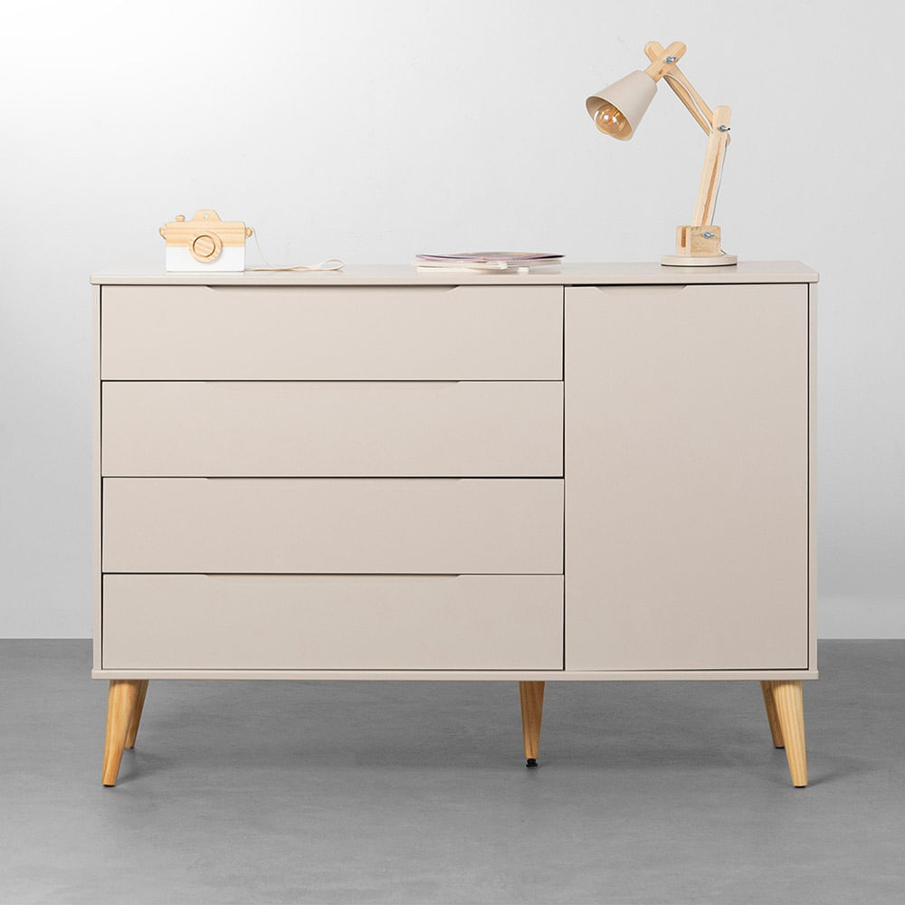 Cômoda Elfe 4 Gavetas e 1 Porta com Pés Retrô Natural - Areia Fosco