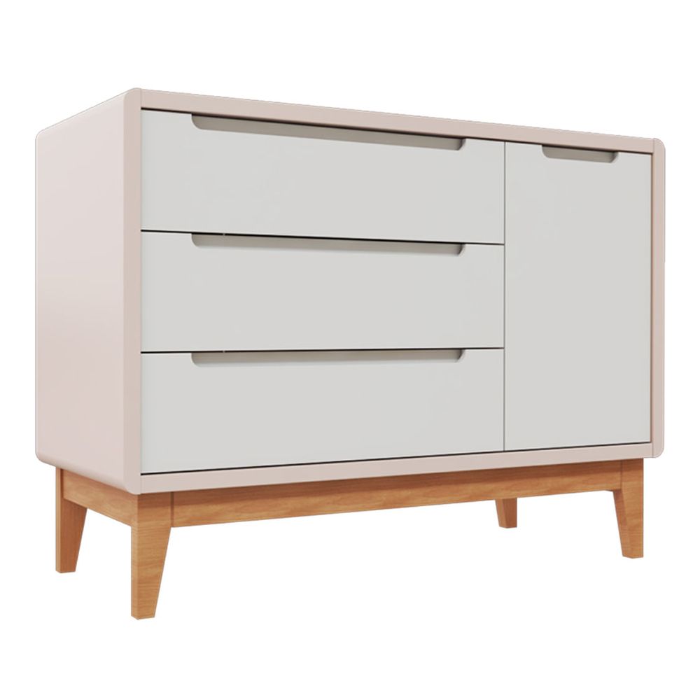 Cômoda Bo 3 Gavetas e 1 Porta - Rosa Old com Pés Jequitibá