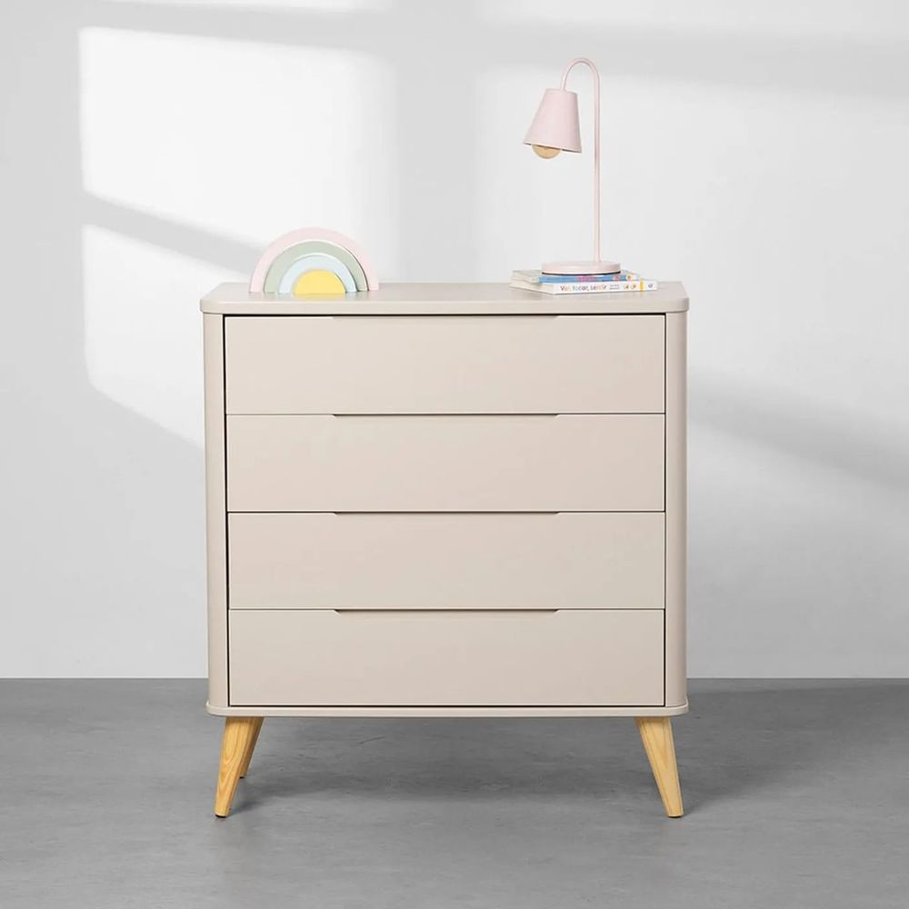 Cômoda Boom 4 Gavetas com Pés Retrô Natural - Areia