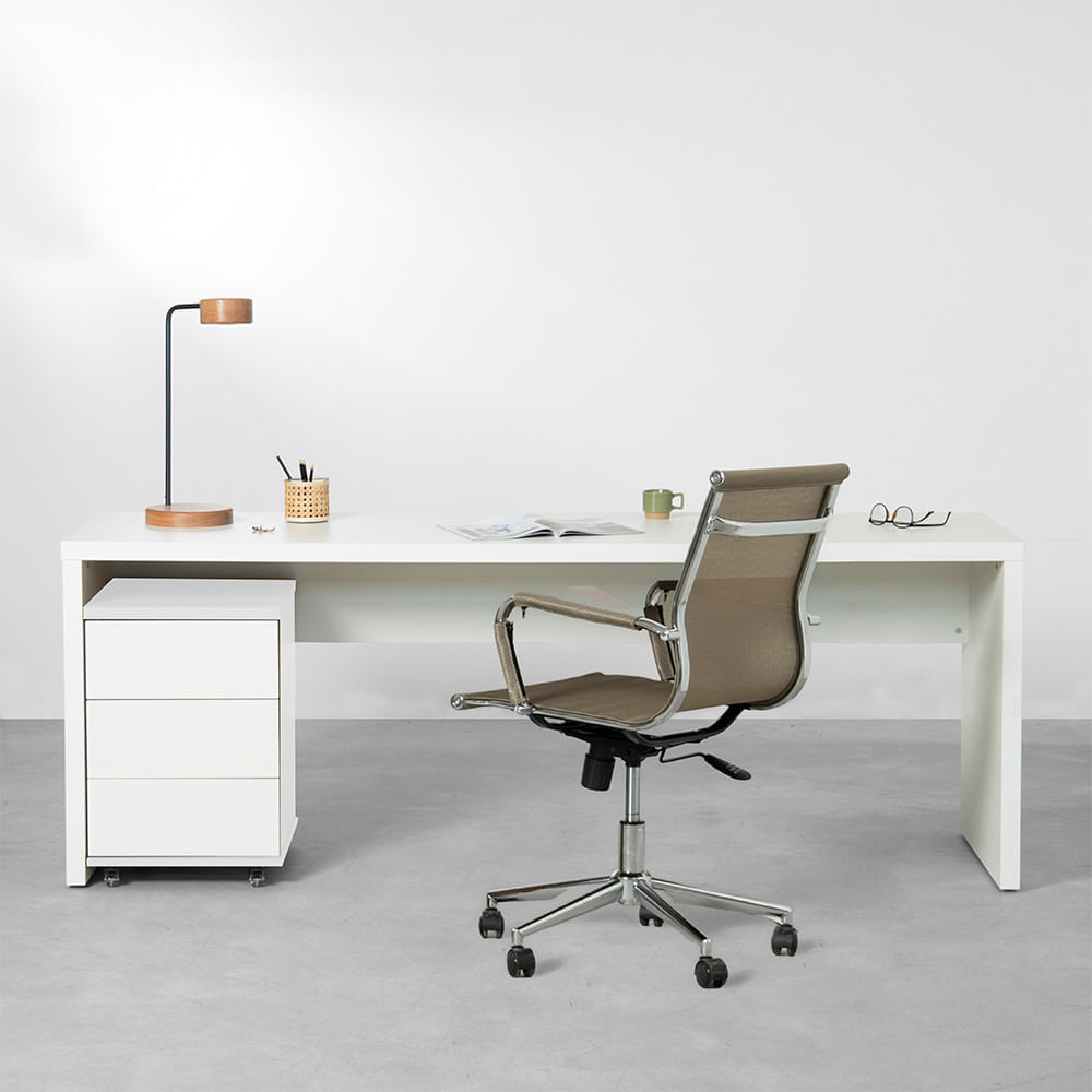 Conjunto Office - Bancada Contemporânea Branco 1,36m + Módulo Contemporâneo 3 gavetas Branco 42,5cm + Cadeira de Escritório Noruega Cobre