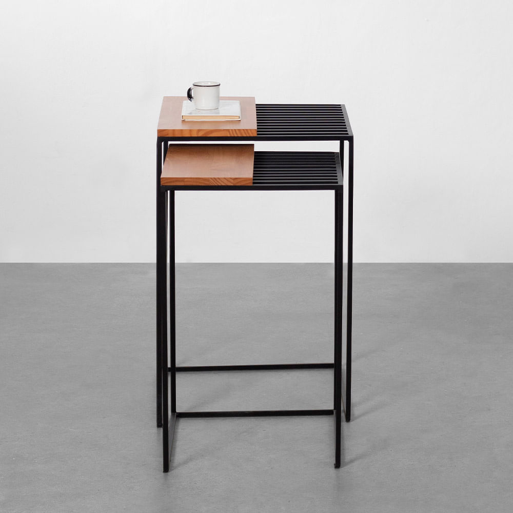 Conjunto com 2 Mesas Laterais Tak - Preto e Tammi