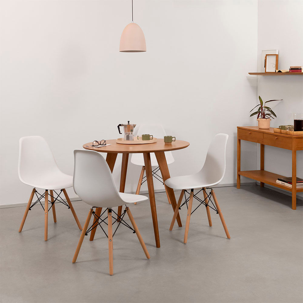 Conjunto Mesa de Jantar Square Laminada Redonda Natural - 88cm + 4 Cadeiras Eiffel - Branco