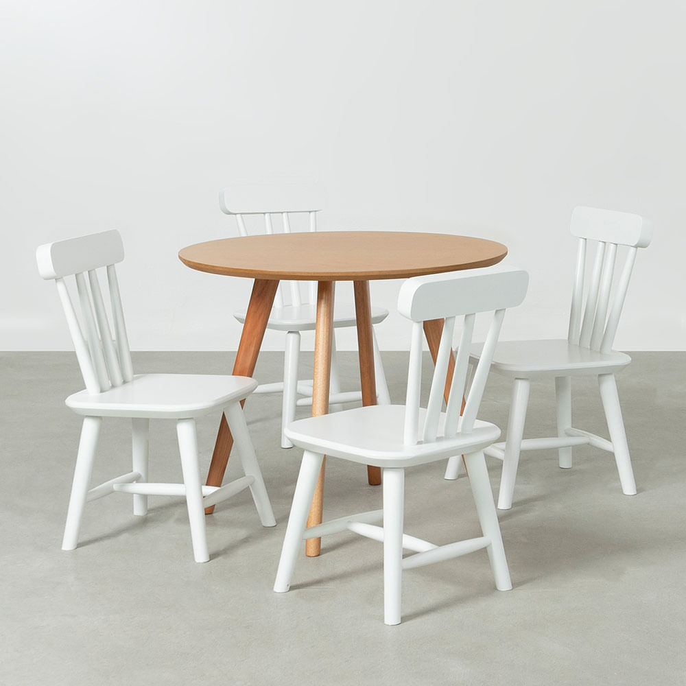 Conjunto Mesa Infantil Square Laminada Natural - 68cm + 4 Cadeiras Cissa - Branco