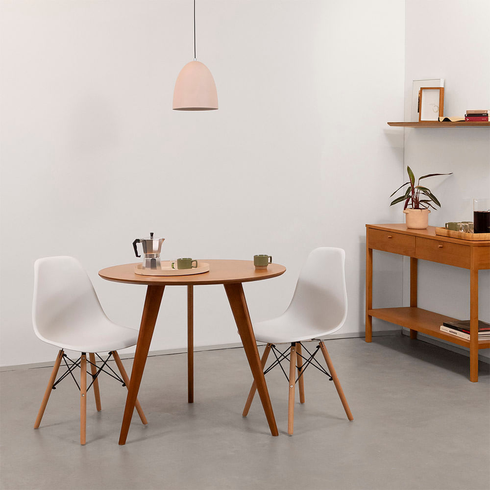 Conjunto Mesa Jantar Square Laminada Redonda Natural - 88cm + 2 Cadeiras Eiffel em PP - Branco