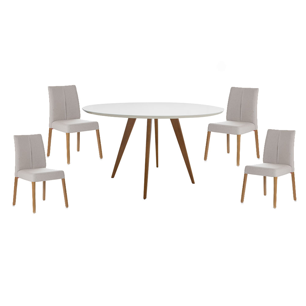 Sofisticada, a Mesa Square Redonda Branca - 80cm possui pés em madeira tauari, e um tampo BP branco fosco. Sem descuidar da qualidade, ela foi projetada de forma a proporcionar durabilidade e resistência. Comporta até 5 lugares.