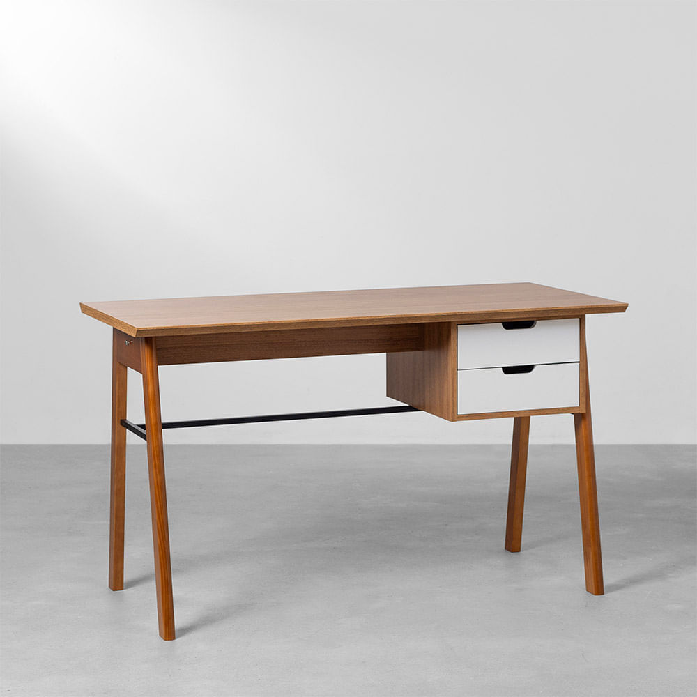 Escrivaninha Vintage 2 Gavetas Louro Freijó e Branco - 1,30m