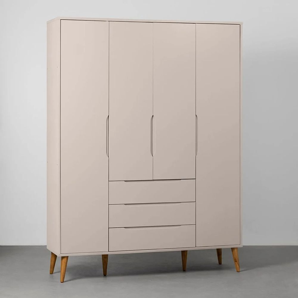 Guarda-Roupa Elfe 4 Portas e 3 Gavetas com Pés Retrô Mel - Areia Fosco