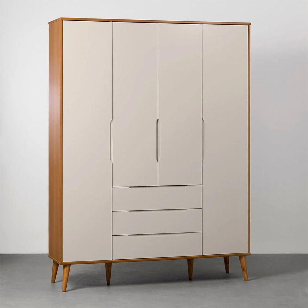 Guarda-Roupa Elfe 4 Portas e 3 Gavetas com Pés Retrô Mel – Areia Fosco e Savana