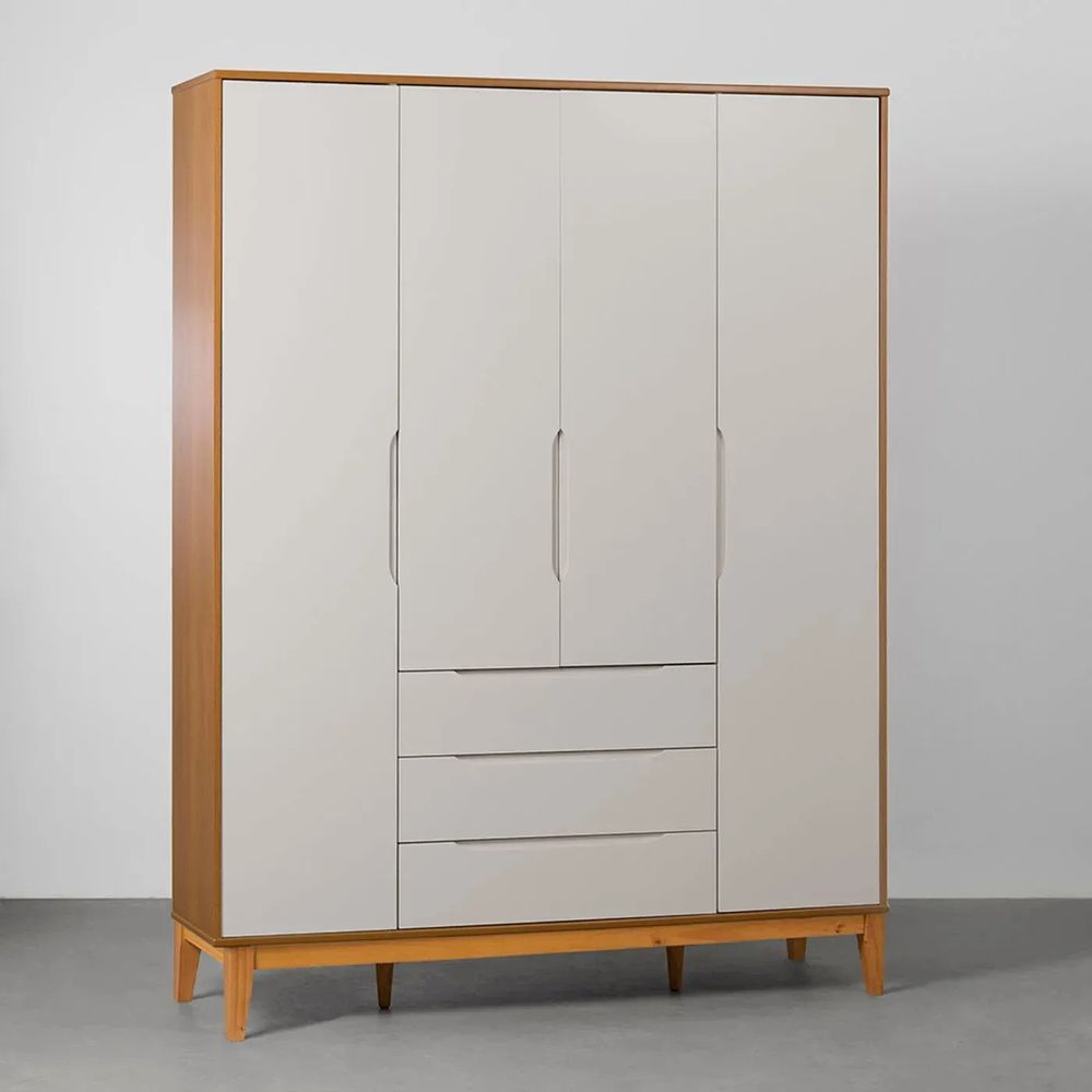 Guarda-Roupa Elfe 4 Portas e 3 Gavetas com Pés Square Mel - Areia e Savana