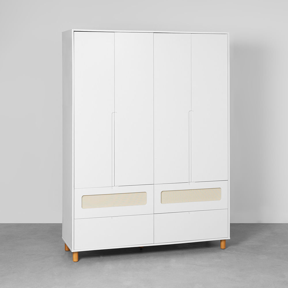 Guarda-Roupa Ollie 4 Portas com Pés Natural - Branco Fosco