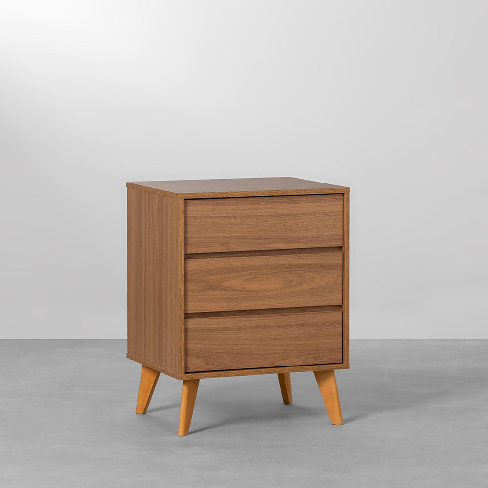 Mesa de Cabeceira Leni 3 Gavetas - Louro Freijó