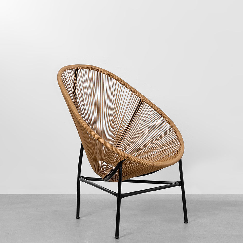 Poltrona Acapulco com Estrutura Preta - Terracota e Palha