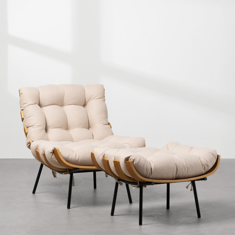 Poltrona com Puff Costela Trend - Bege