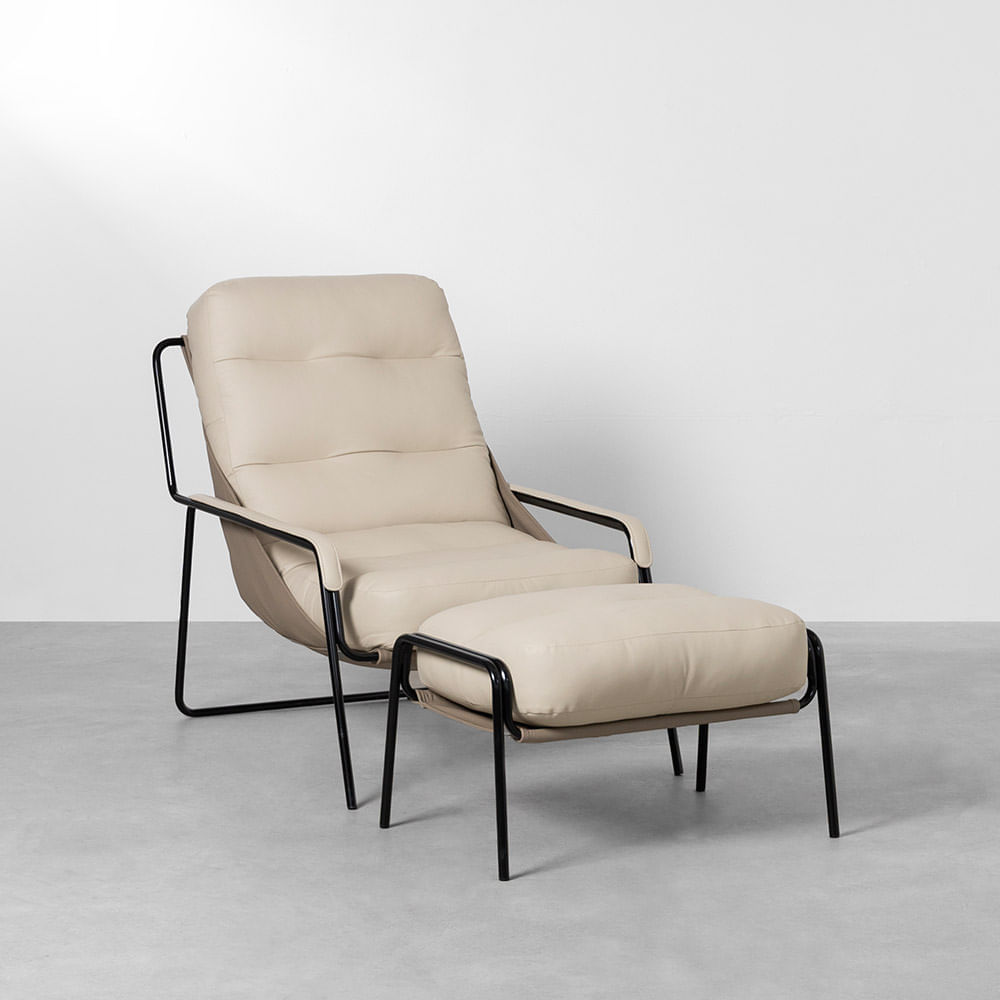 Poltrona Maggiolina com Puff - Couro Avelã e Pérola Fosco