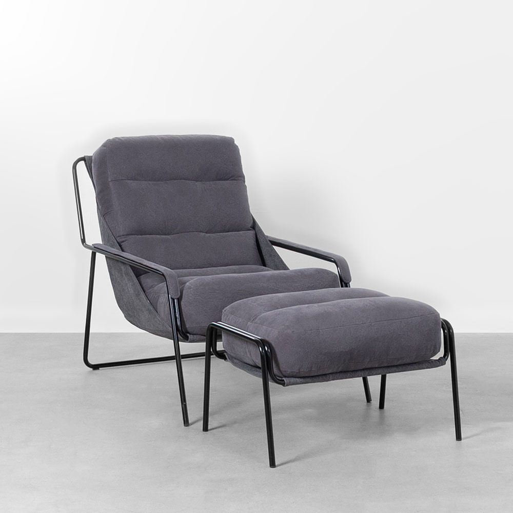 Poltrona Maggiolina com Puff - Chumbo e Cinza