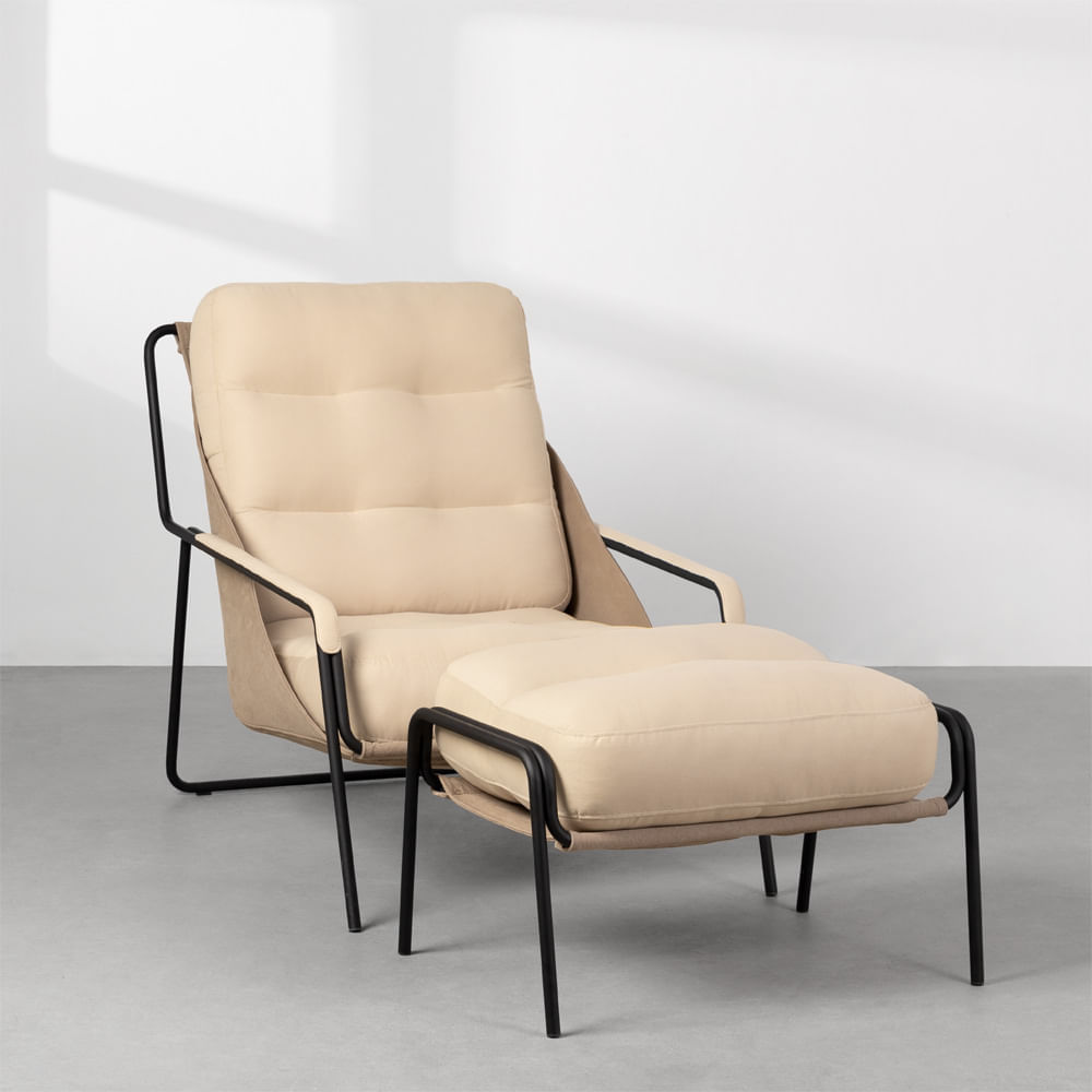 Poltrona Maggiolina com Puff – Bege