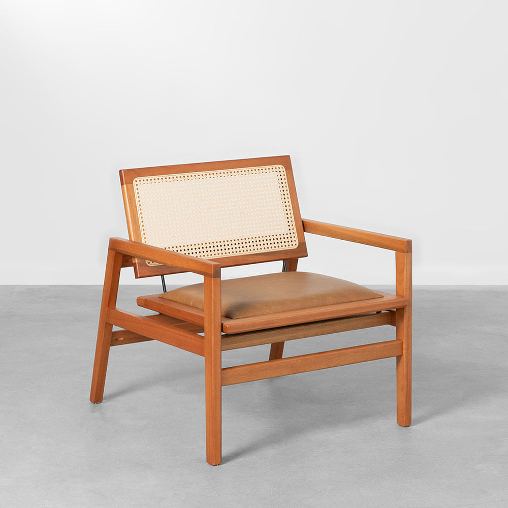 Poltrona Zulu Encosto Palha Natural Assento PU - Caramelo